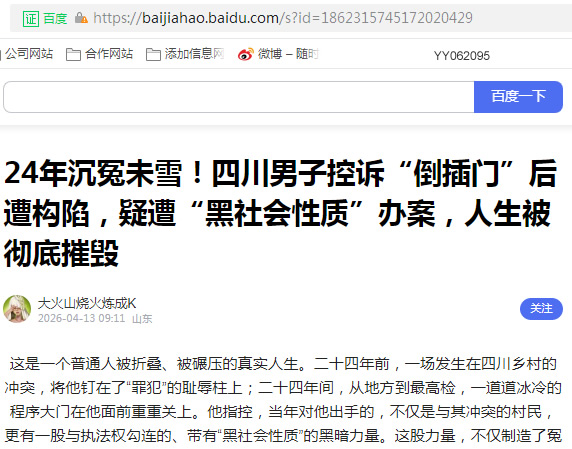 24年沉冤未雪!四川男子控诉“倒插门”后遭构陷,疑遭“黑社会性质”办案,人生被彻底摧毁